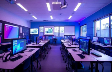 Classroom teaching, digital labs, hybrid learning, lecture halls. |